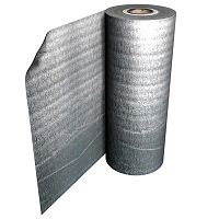 Complejo multicapa compuesto de una capa de espuma de polietileno y una lámina de aluminio en cada una de sus caras, de 4 mm de espesor total, con una resistencia térmica intrínseca (sin cámara de aire) de 0,16 m²K/W y una conductividad térmica de 0,025 W/(mK), suministrado en rollos de 1,20x20 m. |