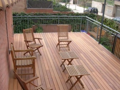 Rastrel de madera de pino, de 50x38 mm, tratada en autoclave, con clase de uso 4, para apoyo y fijación de las tarimas de exterior. |