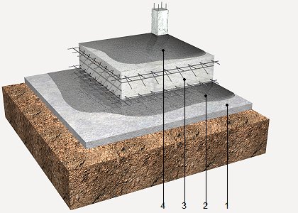 Impermeabilización de losa de cimentación, mediante saturación de la red capilar del concreto. IMPERMEABILIZACIÓN BAJO LA LOSA: aplicación de mortero impermeabilizante, en polvo, mediante espolvoreo manual, rendimiento: 2 kg/m², antes de proceder al fundido, con la armaduría de la losa ya montada, sobre el concreto de limpieza previamente humedecido con agua. IMPERMEABILIZACIÓN SOBRE LA LOSA: aplicación de mortero impermeabilizante, en forma de lechada, mediante extendido con cepillo, rendimiento: 2 kg/m², en dos capas, sobre el concreto ya fraguado. | ||