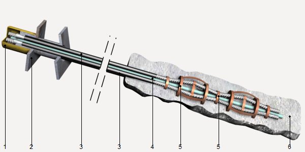 Anclaje provisional de muro pantalla al terreno, con inclinación de 30° respecto al plano horizontal, hasta 17,5 m de longitud, para asegurar la estabilidad del muro pantalla durante los trabajos de excavación de las tierras, hasta que se rigidice definitivamente el muro mediante sus uniones con el resto de la estructura, durante un tiempo de servicio inferior a 2 años, compuesto de los siguientes trabajos: extracción de tierras con medios mecánicos, mediante perforación del muro pantalla y del terreno, con entubación de 114 mm de diámetro exterior; introducción de 3 cables formados por cordones trenzados de acero de 0,6" (15,2 mm) de diámetro nominal, engrasados y envainados en tubo de PE; inyección a presión mediante el sistema de inyección única global (IU), de lechada de cemento CEM I 42,5N, con una relación agua/cemento de 0,4, dosificada en peso, para protección y formación del bulbo; fijación de los cables a la cabeza de anclaje formada por placa de apoyo y cuña de acero; tesado de los cables con gato de tesado multifilar y central hidráulica, una vez fraguada la lechada de cemento; sellado de la perforación y puesta en servicio, y carga manual de escombros sobre camión o contenedor. | ||