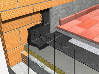 | Encuentro de cubierta plana transitable, no ventilada con paramento vertical. Impermeabilización con mantos prefabricados asfálticos | ||