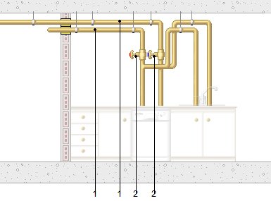 Instalación interior de plomería para cocina con dotación para: lavatrastos, toma y llave de paso para lavavajillas, realizada con tubo de polietileno reticulado (PE-X), para la red de agua fría y caliente que conecta la yee 45° particular o una de sus ramificaciones con cada uno de los artefactos sanitarios, con los diámetros necesarios para cada punto de servicio. Incluso llaves de paso de cuarto húmedo para el corte del suministro de agua, de polietileno reticulado (PE-X), material auxiliar para montaje y sujeción a la obra, yee 45° particular, accesorios de yees 45°. | ||