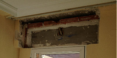 Recibido de bastidor para cajón de persiana, con pasta de yeso de albañil. | ||