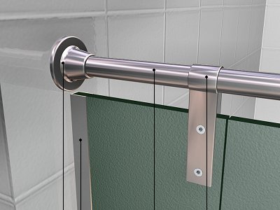 Cabina sanitaria, de 900x1400 mm y 2000 mm de altura, de tablero fenólico HPL, de 13 mm de espesor, color a elegir; compuesta de: puerta de 600x2000 mm y 2 laterales de 2000 mm de altura; estructura soporte de aluminio anodizado, formada por perfil guía horizontal de sección circular de 25 mm de diámetro, rosetas, pinzas de sujeción de los tableros y perfiles en U de 20x15 mm para fijación a la pared y herrajes de acero inoxidable AISI 316L, formados por bisagras con muelle, tirador con condena e indicador exterior de libre y ocupado, y pies regulables en altura hasta 150 mm.