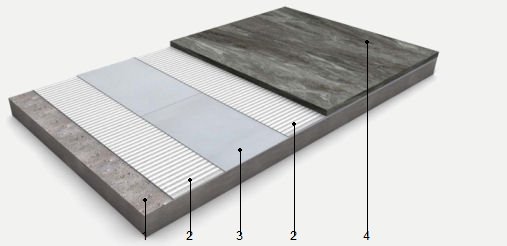 | Desolidarización bajo piso cerámico o de piedra natural, con láminas de elastómero de celdas cerradas | ||